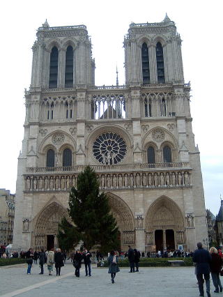 | ノートルダム寺院正面。ツリーの樅の木が植えられていた。 |