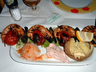 車海老のブロシェ。ライス、サラダ、ポテト付き。パリの典型