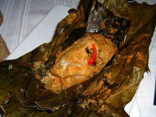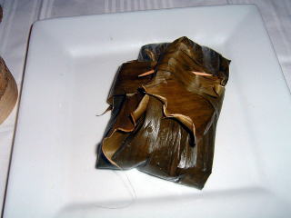 メインも、去年は蟹。今回は当店お薦めの、魚の葉巻蒸し。