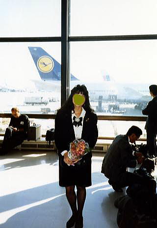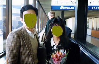 | 搭乗ゲートへ。誰かが二人の写真を撮ってくれた。 |