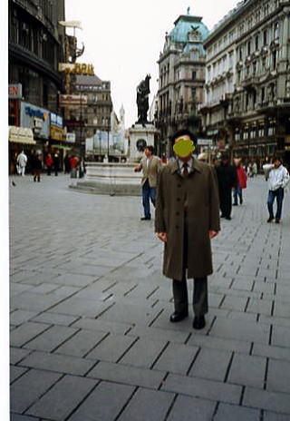 | グラーベンのペスト記念柱を背に |